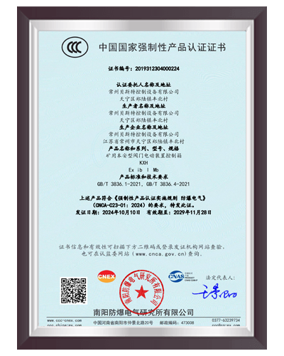 于2000年通過 ISO9001:2000質量體系認證,建立了完善的產品質量控制體系;2006 年6月取得全國工業產品生產許可證;2008年9月取得礦用產品安全標志證書;2012年取得8項礦用產品的專利證書。